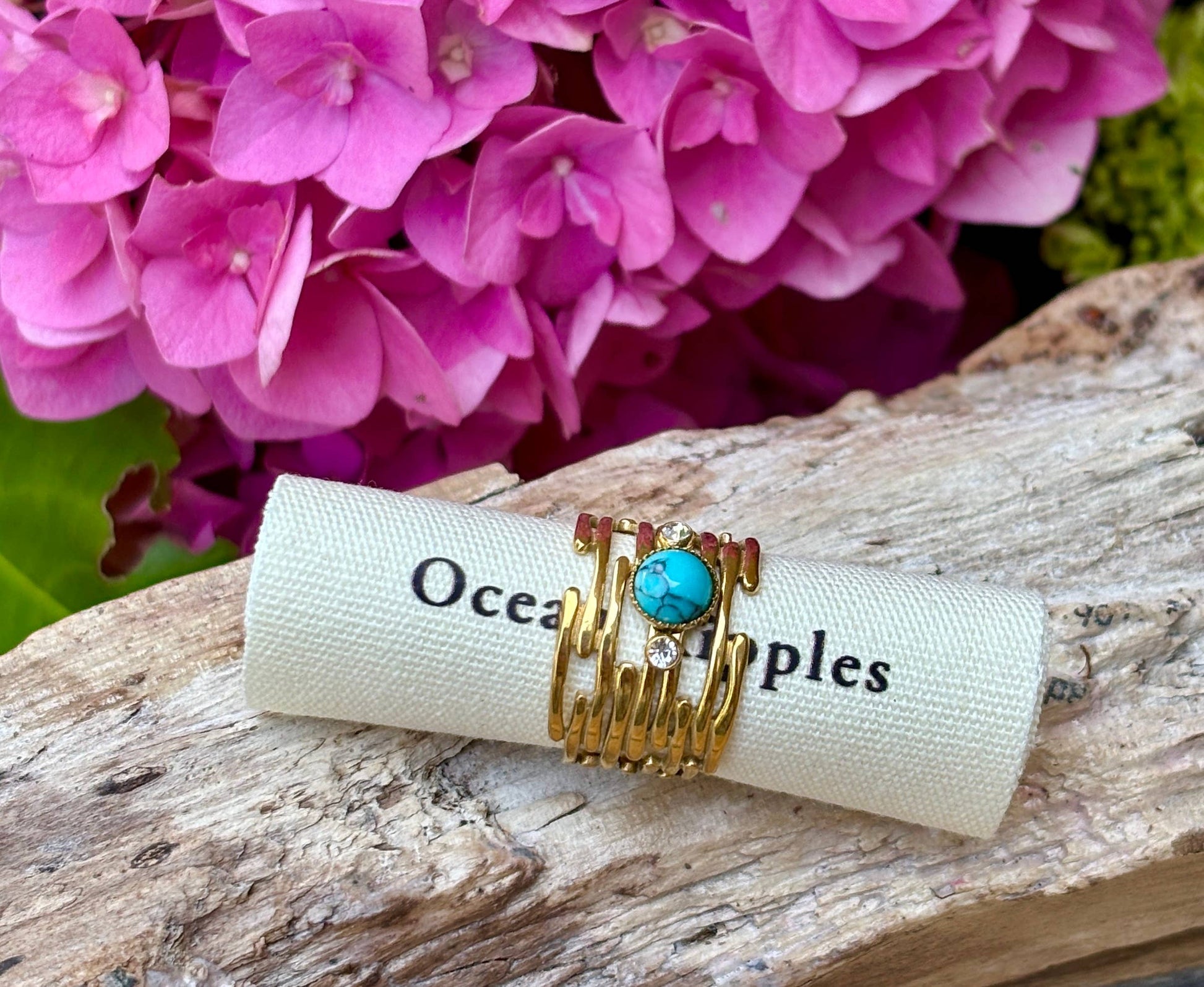 18ct Gold Plated Turquoise Cubic Zirconia Multi Band Ring
