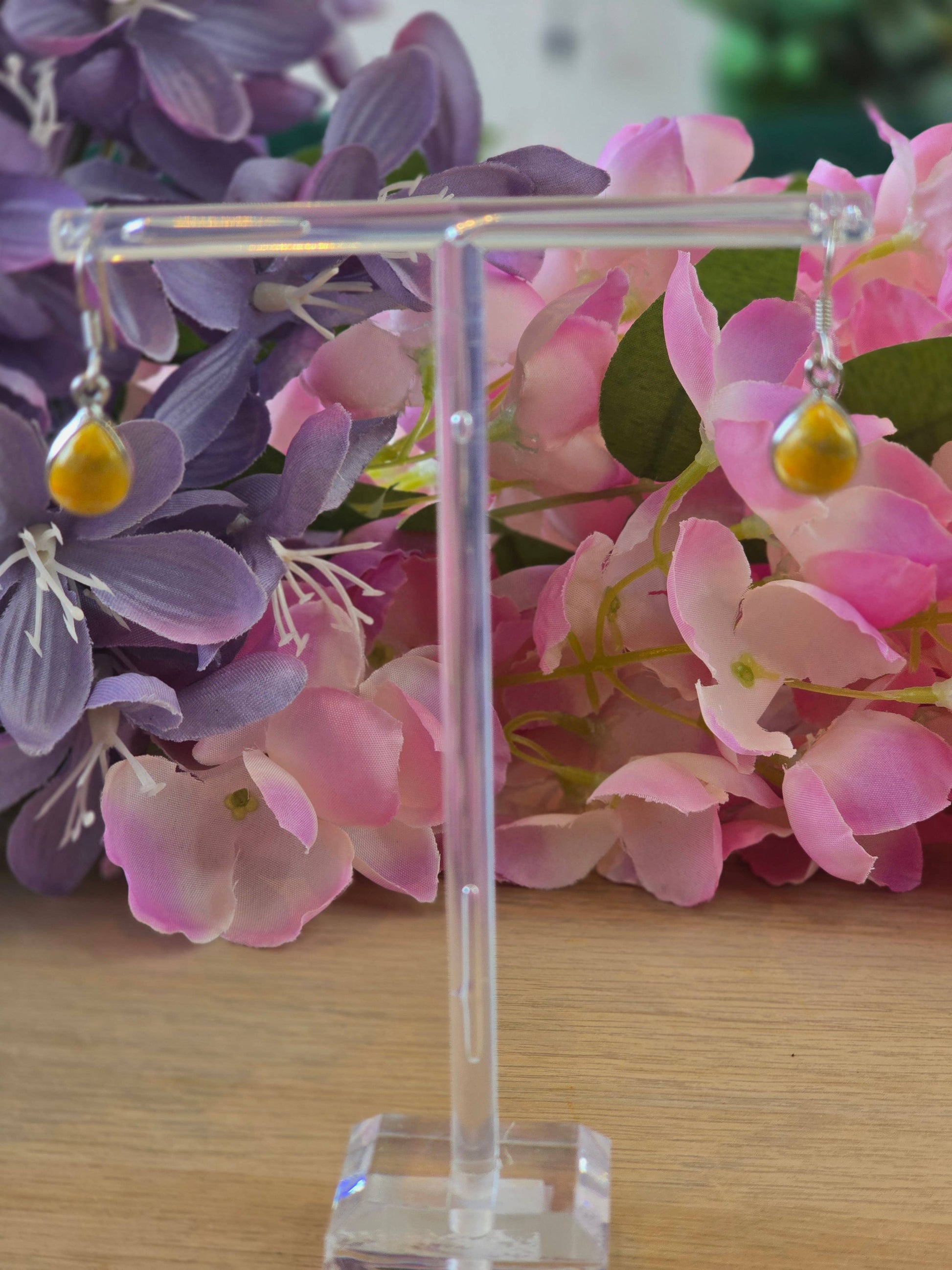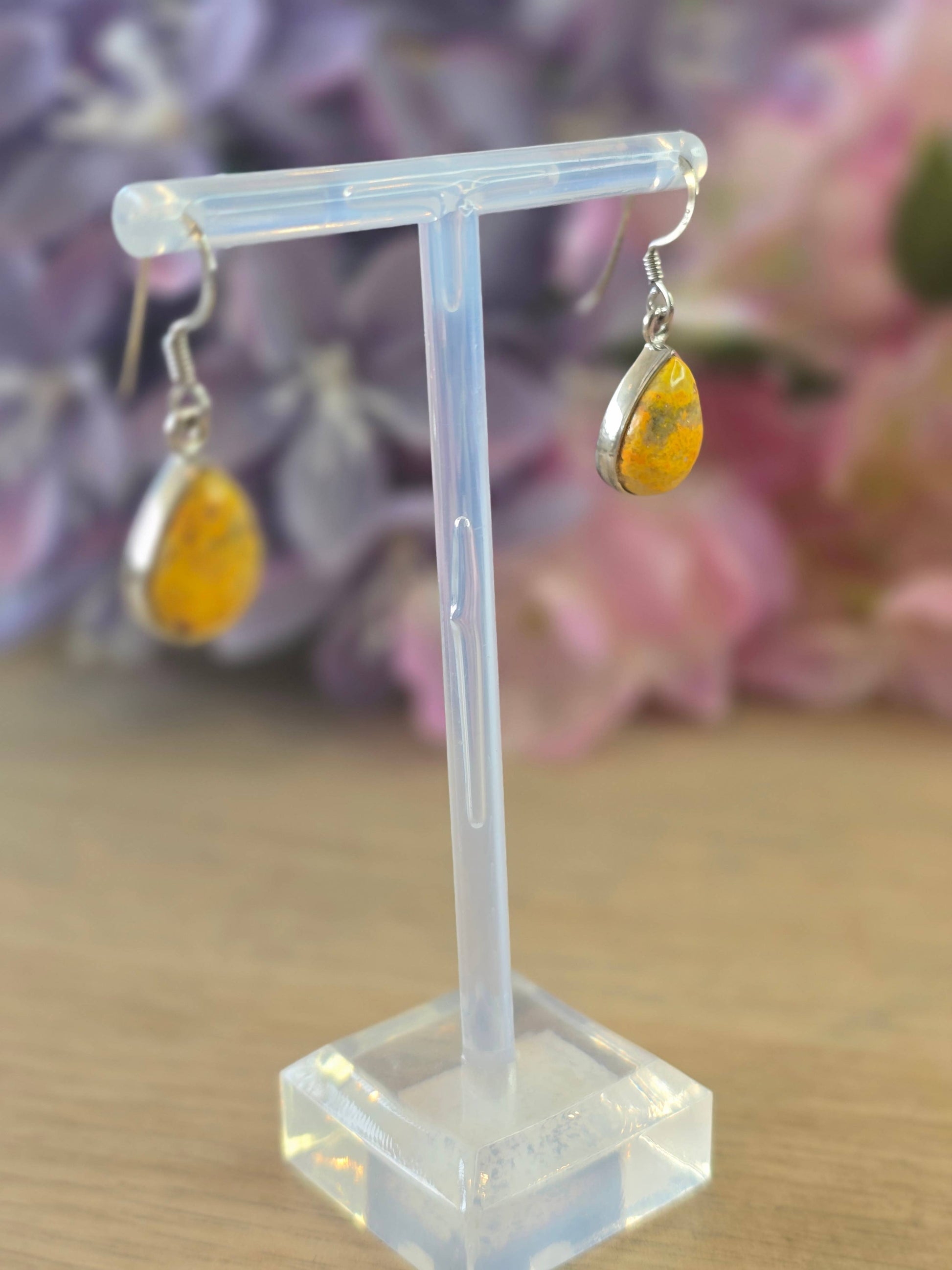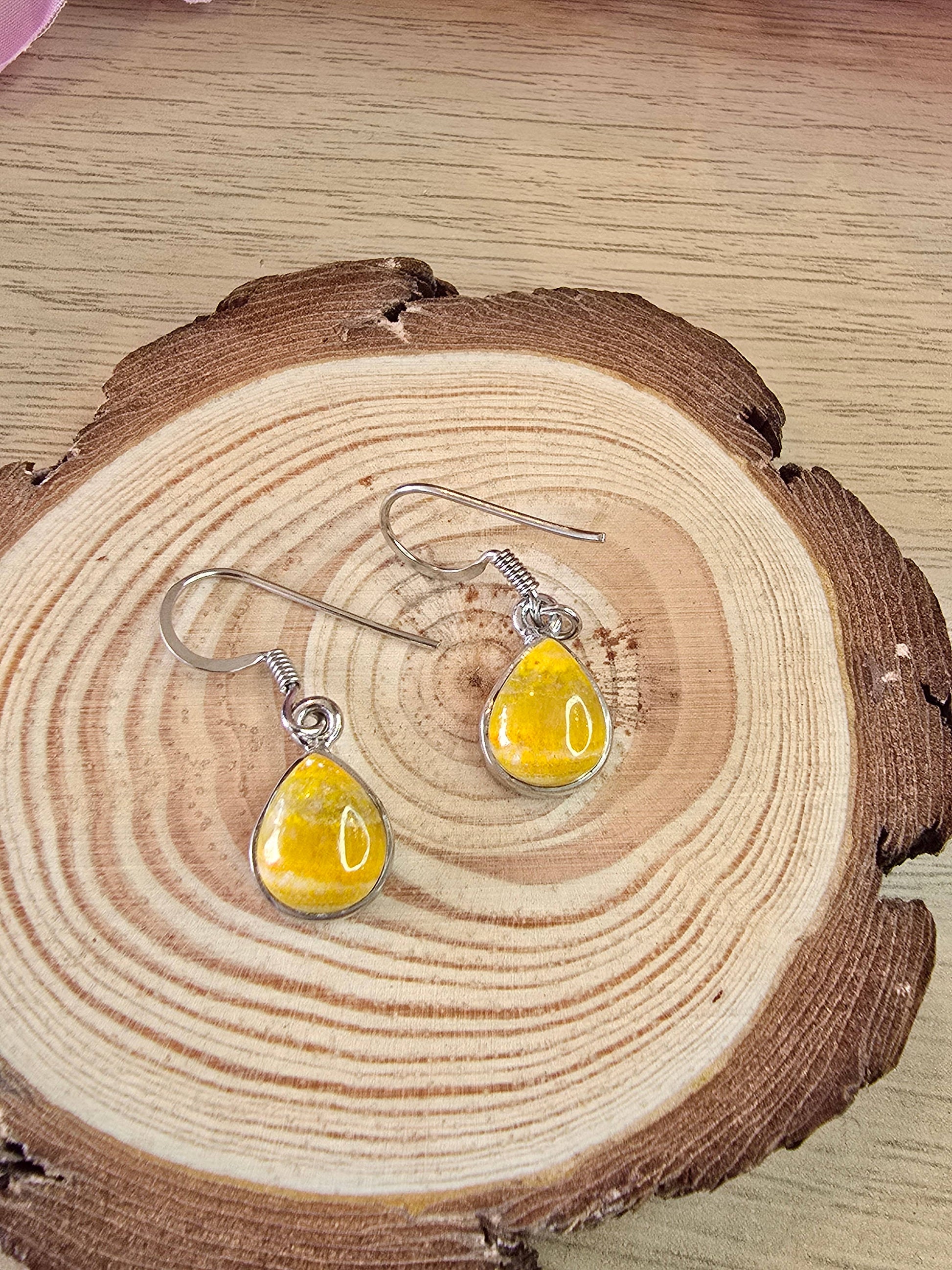 Striking and vibrant, these handcrafted Bumblebee Jasper drop earrings are set in high-quality 925 sterling silver. Known for their bold yellow, orange, and black banding, Bumblebee Jasper is a rare and powerful stone associated with courage, creativity, and positive transformation.