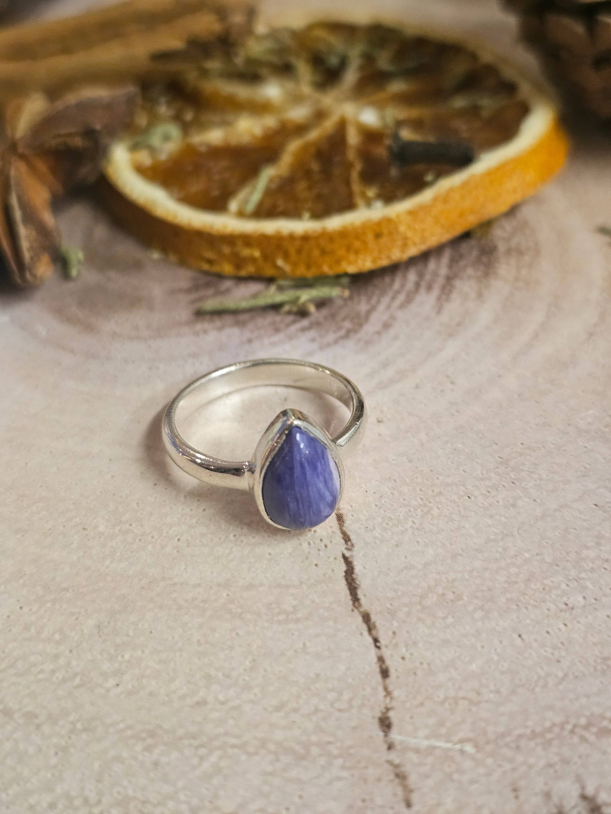This Charoite ring captures the essence of elegance and individuality. Perfect as a thoughtful gift or a statement piece, it’s a stunning way to celebrate nature’s artistry.