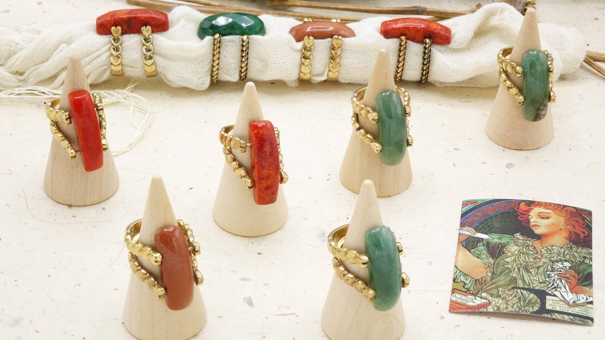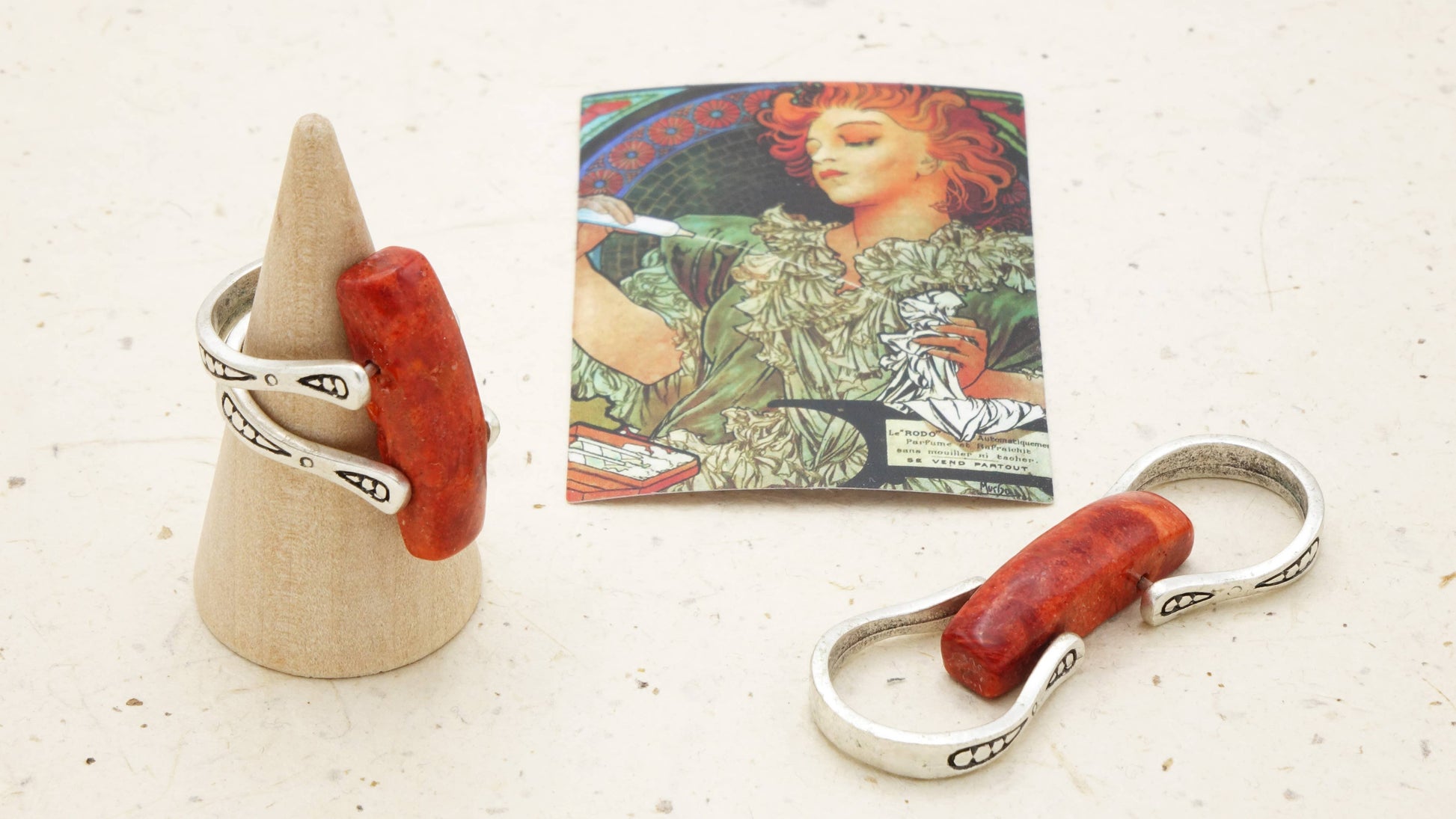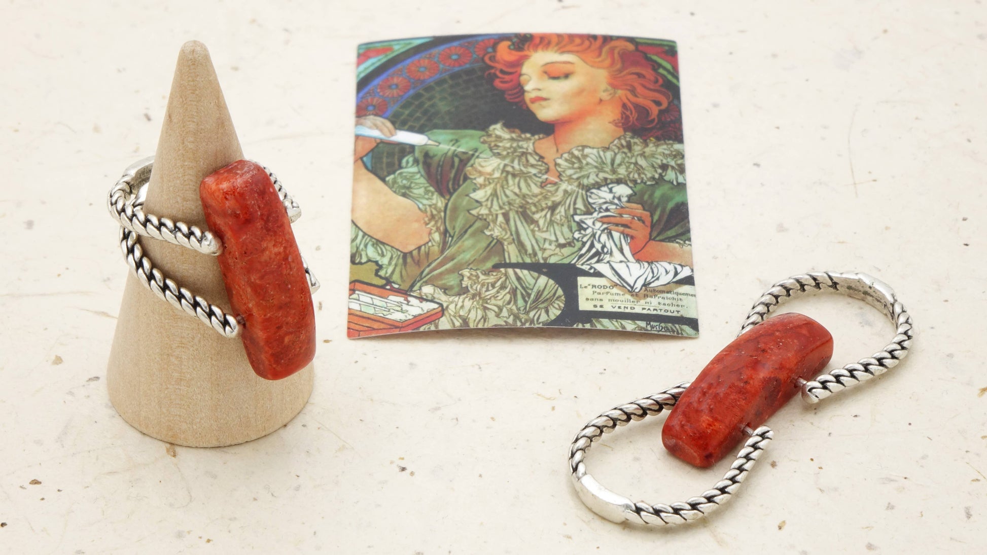 Infuse your collection with rich, earthy tones and bold artisan flair with our Coral Stone Rings. Featuring striking natural coral stones in freeform cuts, these rings are paired with gold or silver-coloured bronze bands in a mix of eye-catching handcrafted designs.