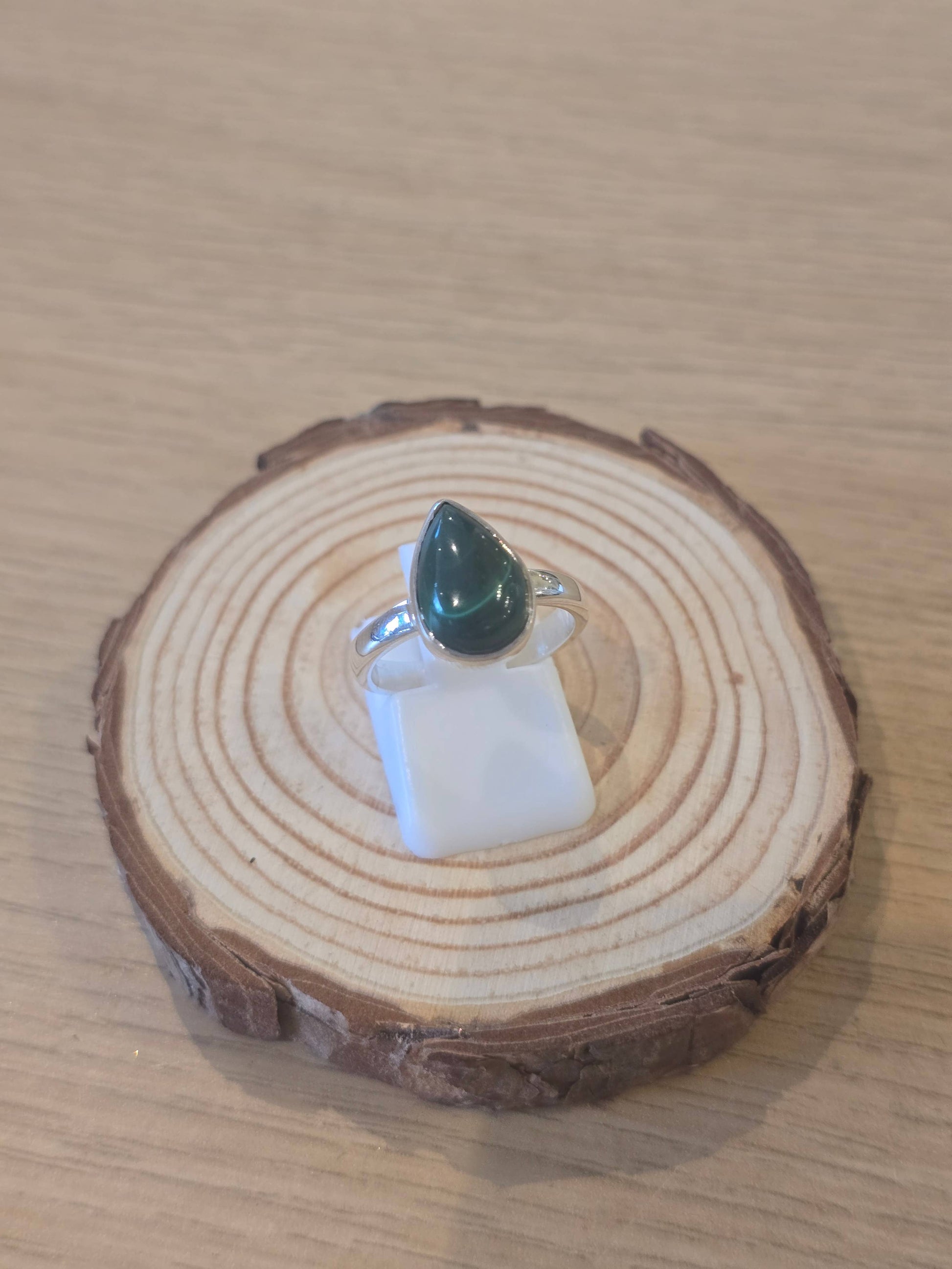 A beautifully polished 3.5g Malachite set in sterling silver, featuring its signature deep green swirls and bands. Malachite is known for its protective, empowering energy and connection to transformation. A unique Size L ring — ideal for those drawn to bold natural beauty and meaningful crystal energy.