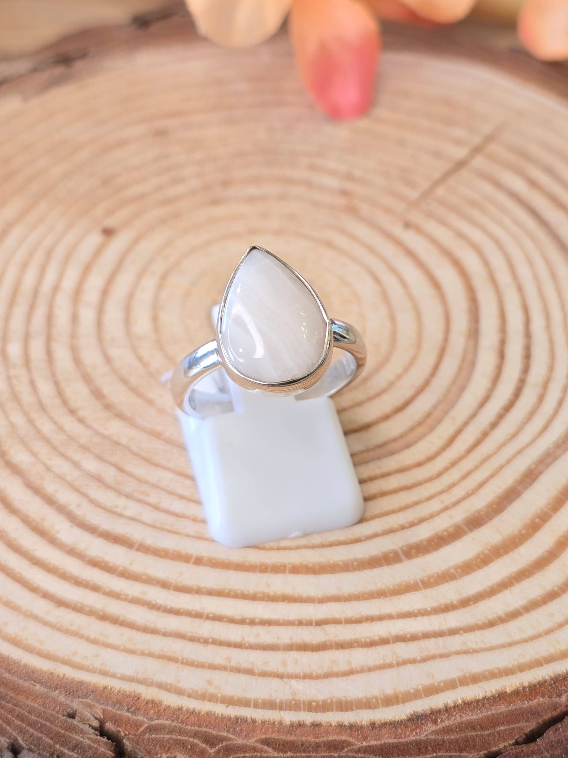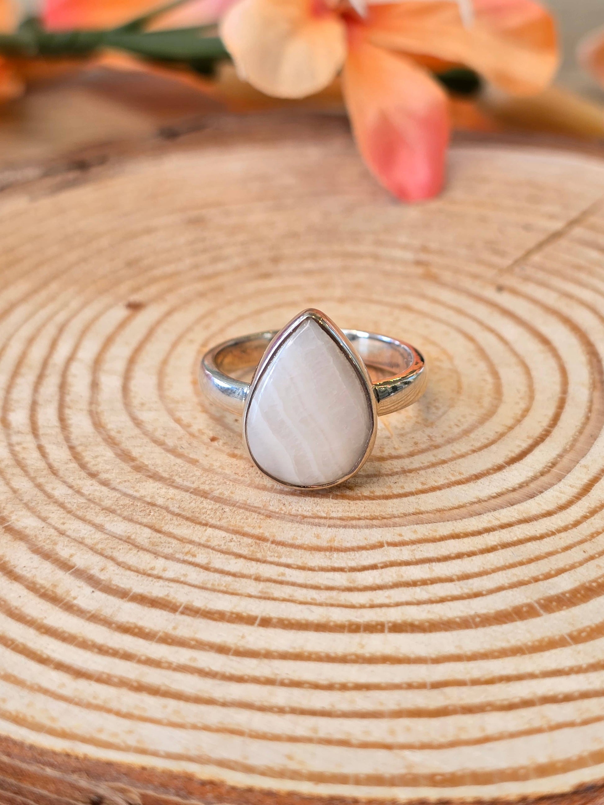 Mangano Calcite Sterling Silver Teardrop Ring - 3.6g - UK N